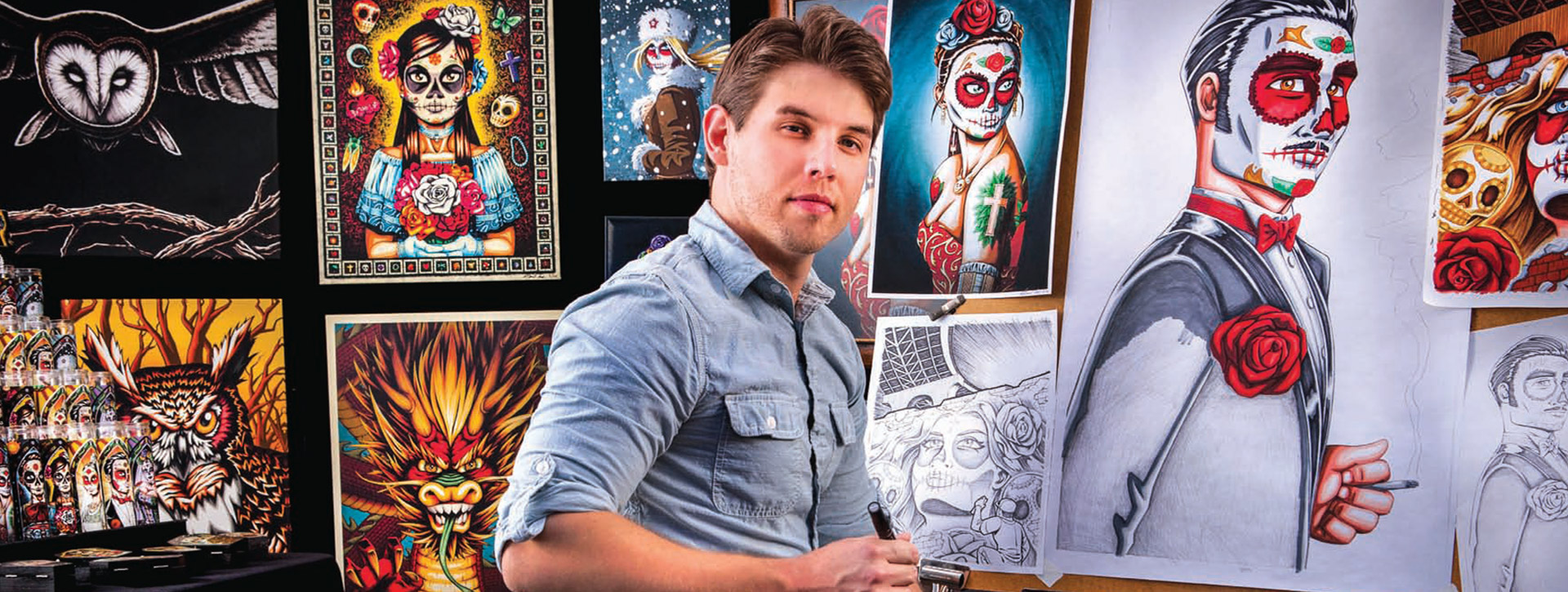 Above all, he enjoys exploring the dark beauty of a wide variety of subjects, including Día de los Muertos figures, meticulous animal portraits, illustrative explorations of music, and more. Nick enjoys pushing the boundaries of his own skills, while continually searching for new depths of meaning and unique perspectives of our increasingly complex world.